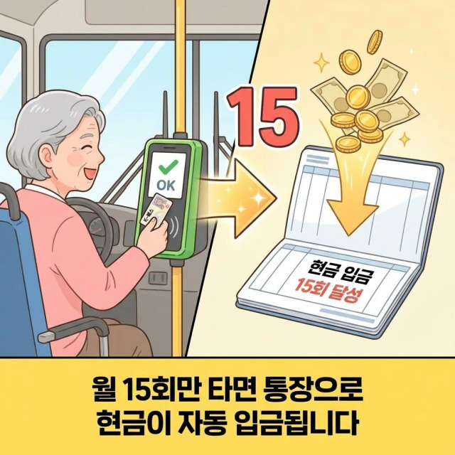 한 달에 15번 이상만 타면 통장으로 현금이 자동 입금되는 구조