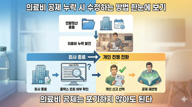 회사에서 진행하는 연말정산이 이미 끝났더라도, 의료비 공제는 이후 절차를 통해 다시 반영할 수 있습니다.