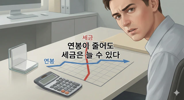 연봉이 줄었더라도 공제 항목이 줄었거나, 성과급 비중 변화로 세율 구간이 달라졌다면 세금은 오히려 늘 수 있습니다.