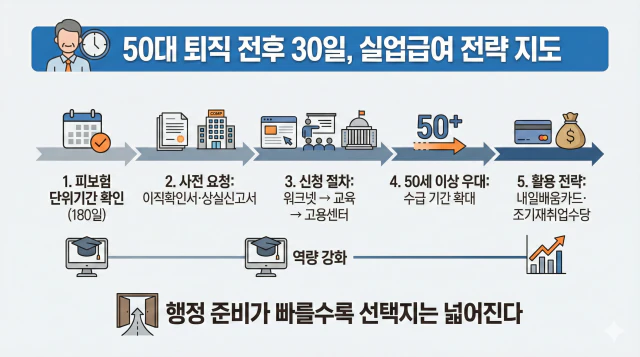 퇴직 후 가장 먼저 마주하는 현실적인 고민은 단연 경제적 공백일 텐데요. 국가에서 지원하는 실업급여는 단순한 보조금을 넘어 제2의 인생을 설계할 소중한 발판이 됩니다. 오늘은 50대 퇴직자가 절대 놓쳐선 안 될 ‘퇴사 전후 30일’의 핵심 전략을 정리해 드립니다. 이 글을 끝까지 읽으시면 남들보다 더 든든하게 실업급여를 챙기는 노하우를 얻어가실 수 있습니다.
